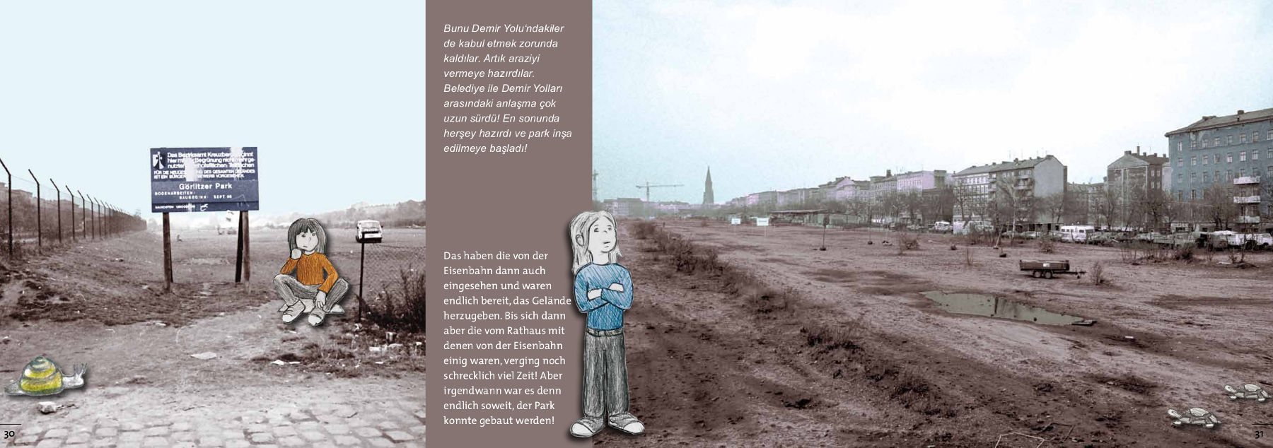 Ganz, ganz früher stand da, wo jetzt der Görli ist, ein großer Bahnhof. Es war ein schöner Bahnhof und viele Züge fuhren von dort aus in alle Welt.