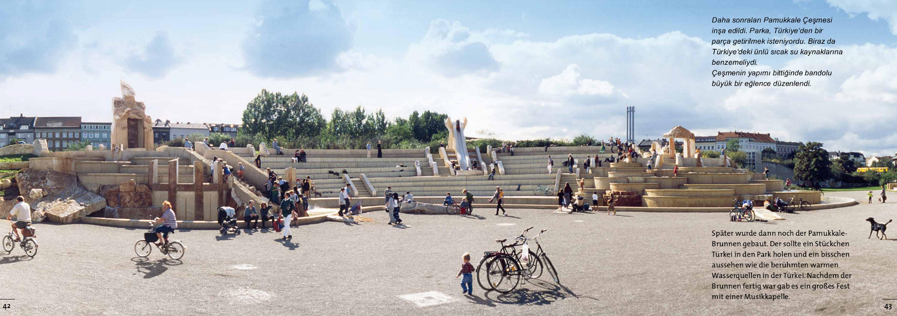 Später wurde dann noch der Pamukkale-Brunnen gebaut. Der sollte ein Stückchen Türkei in den Park holen und ein bisschen aussehen wie die berühmten warmen Wasserquellen in der Türkei.